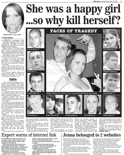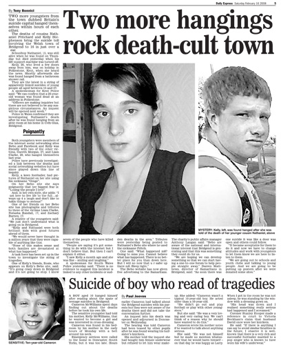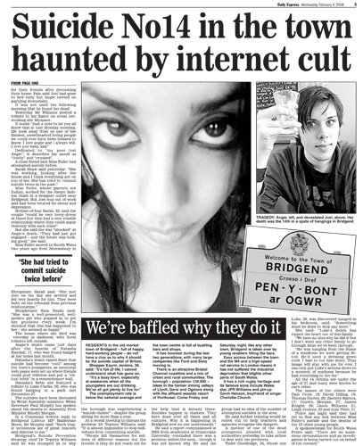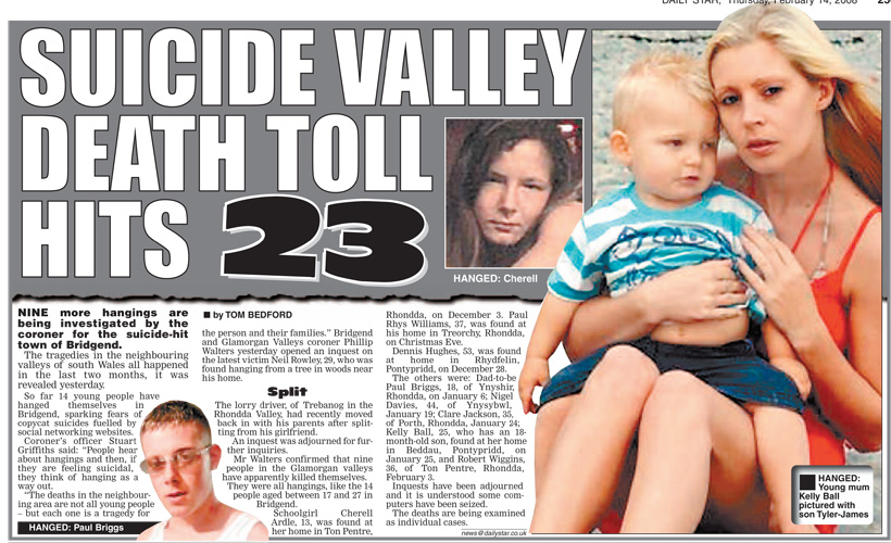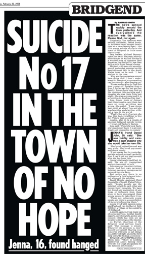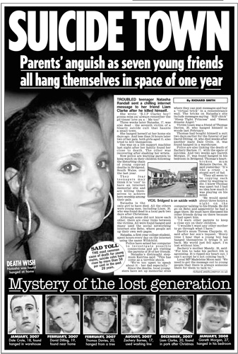 The events in Bridgend made headlines across the UK.Click below to view some of the newspaper articles about the Bridgend tragedy.